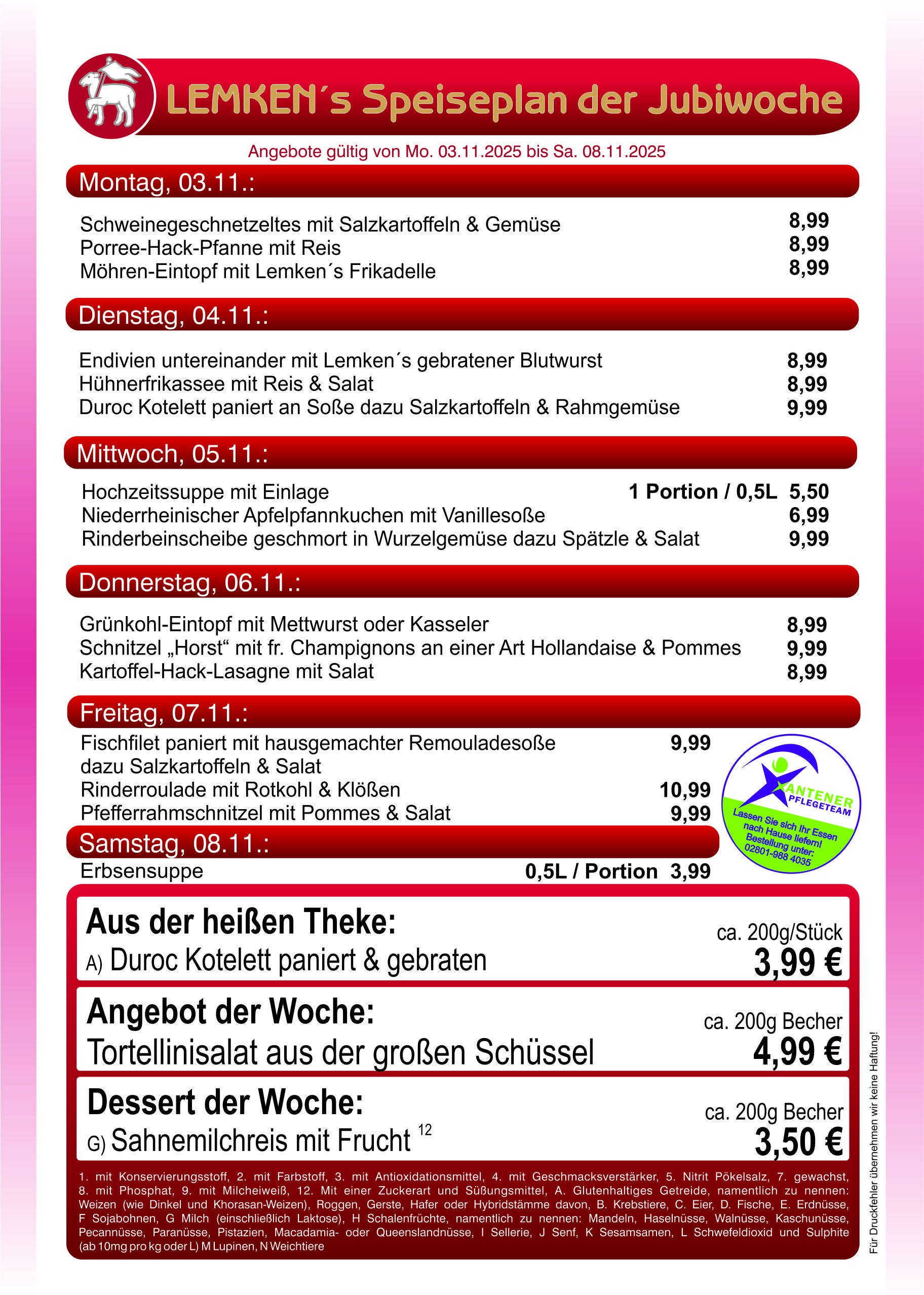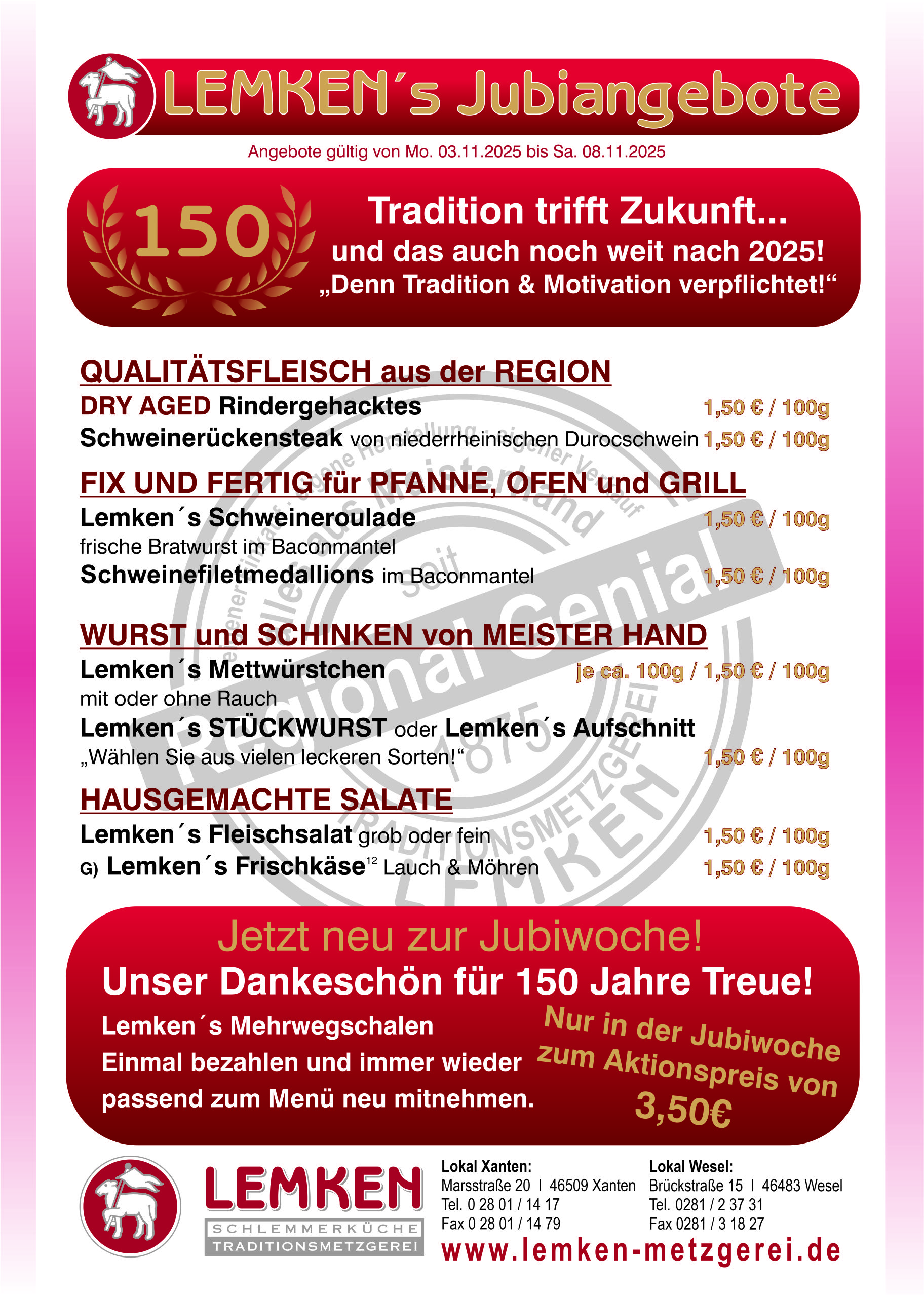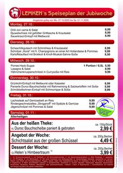 Darüber hinaus haben wir für Sie jede Woche besondere Angebote sowohl aus unserer Metzgerei wie auch aus unserer Schlemmerküche.